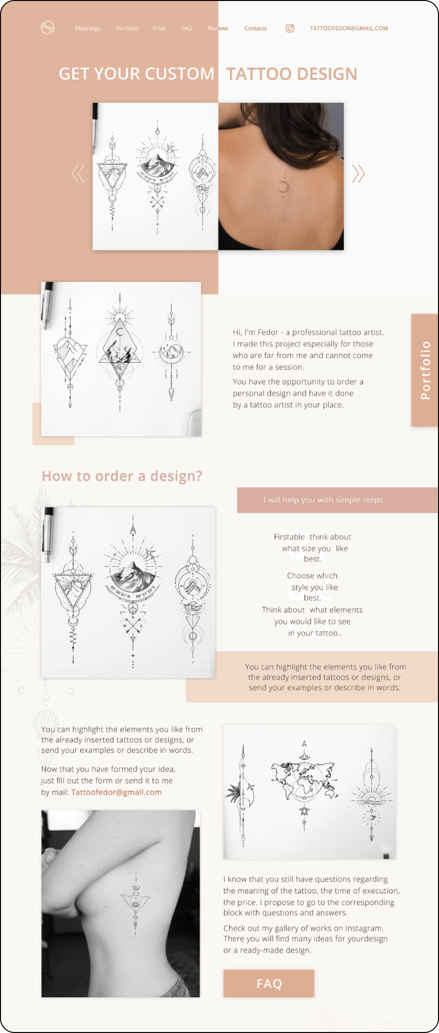 Μια custom ιστοσελίδα αποκλειστικά σχεδιασμένη για έναν πολλά υποσχόμενο tattoo artist με πλούσιο Portfolio
